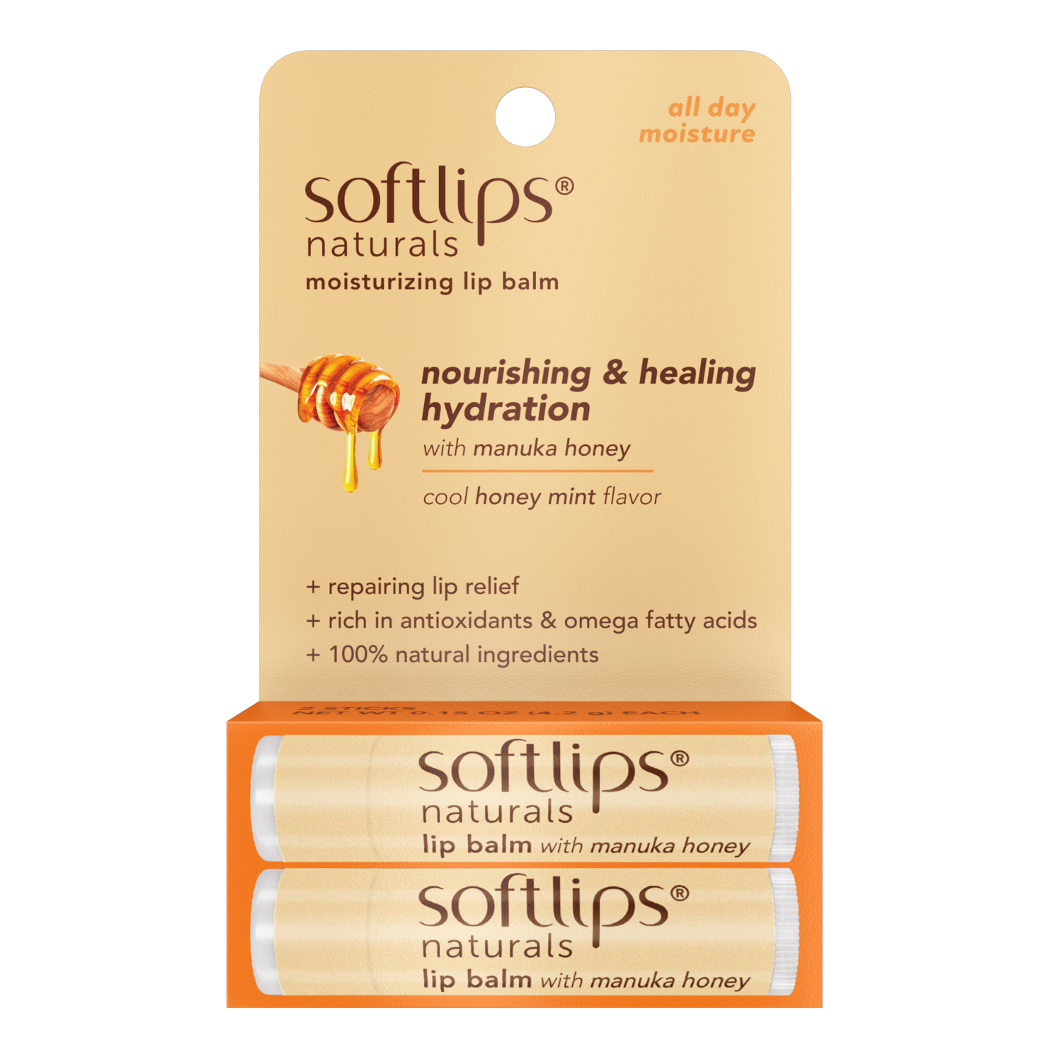 Contains a unique combination of plant-based oils that deliver up to 8 hours of hydration. Manuka honey contains antioxidants to help nourish and restore skin. In addition to nourishing, Softlips® Naturals made with Manuka Honey locks moisture into the skin.